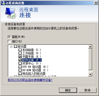 点击“详细信息...”,选择需要在远程计算机中使用的本机驱动器。这里选择 E,F 盘