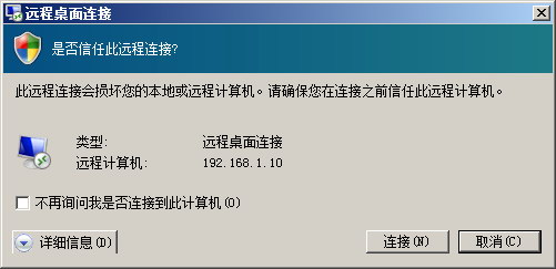 弹出安全提示对话框,点击“连接”