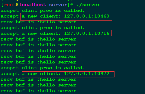 启动服务程序,执行三个个客户程序进行测试,结果如下图所示: