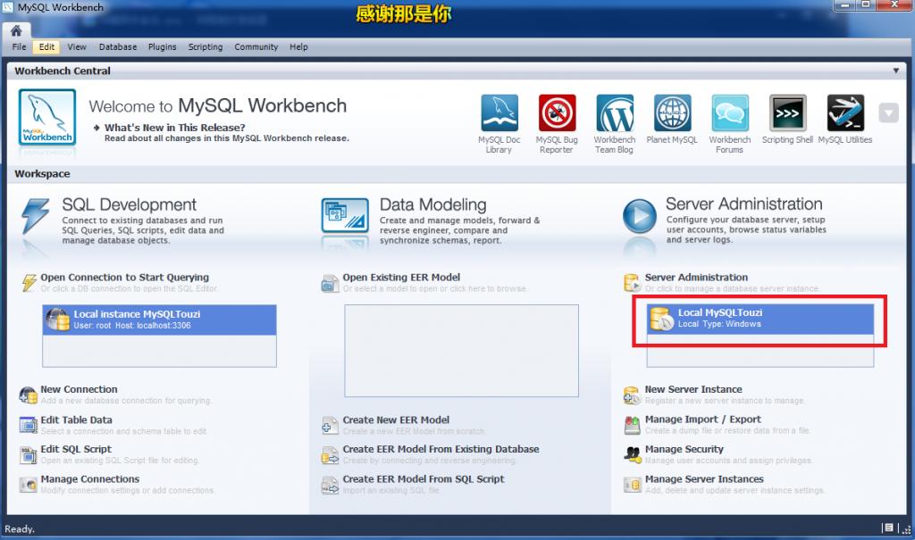 1.这里我们通过软件设置更改。首先启动MySQL Workbench 5.2 CE(在开始菜单的musql文件夹中。)