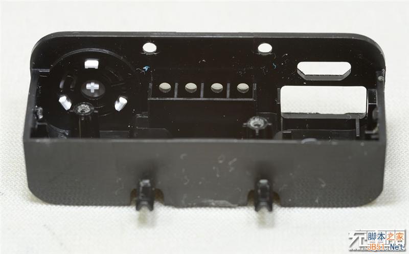 电路板正面的电源芯片和电感上方罩上了黑色塑胶盖,并用螺丝固定在黑色底壳结构中,部分元件使用透明胶加强固定(点胶),塑胶盖里面用灰色固定胶填满,两侧电线正负极焊点处也有点上灰色固定胶 。电池组靠近电路板的正极端贴上绝缘用白色保护贴纸 。