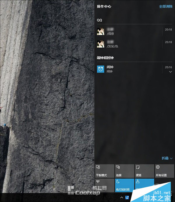 图01开启免打扰后,Win10会屏蔽掉所有的Modern通知