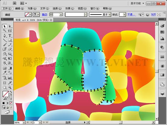 (11)参照上述所示方法,制作其它字母图形,绘制路径并建立实时上色填充图形。