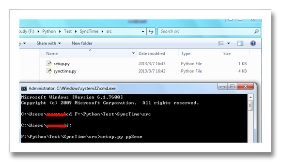 1、在当前目录下运行"setup.py py2exe",顺利的话会在当前目录下生成dist和build目录