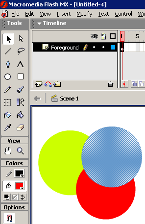 如果将一个层上的多个重叠对象导入到 Flash 中,则重叠的形状将在重叠处被分割,就像在 Flash 中创建的重叠对象一样。
