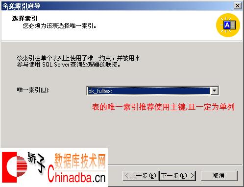 4:为全文索引选择唯一索引,如 图4