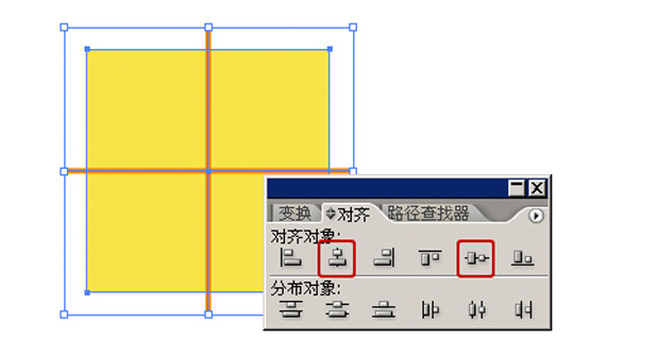 执行“窗口>对齐”命令,显示对齐调板,在对齐调板中单击“水平居中对齐”和“垂直居中对齐”按钮各一次。