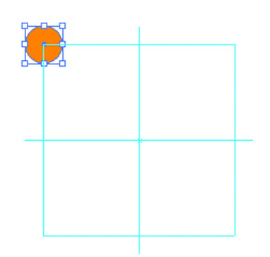 执行“视图>参考线>创建参考线”命令,将图形转换为参考线,选择椭圆工具,将光标移至参考线的左上角。