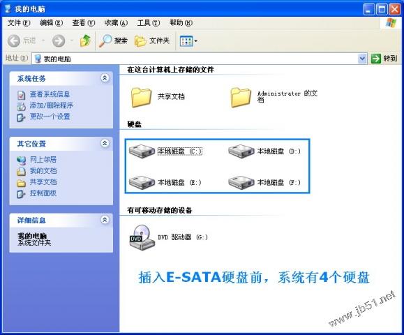 这是连接E-SATA硬盘时,“计算机”看到的E-SATA硬盘。
