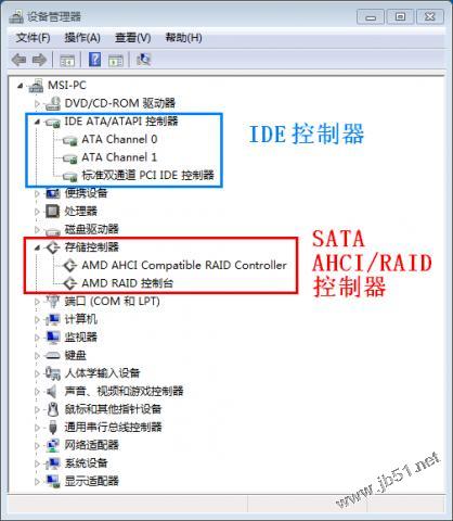 BIOS开启AHCI,安装win7后设备管理器看不到SATA AHCI控制器,而是AMD SATA控制器。