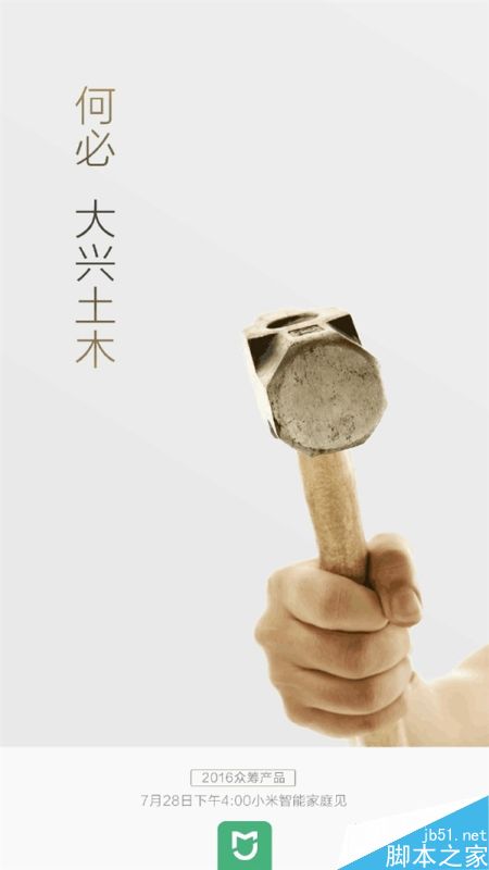 今天,官微给出了同一款产品的第2个谜面,是一把锤子,并表示,“何必 大兴土木”。