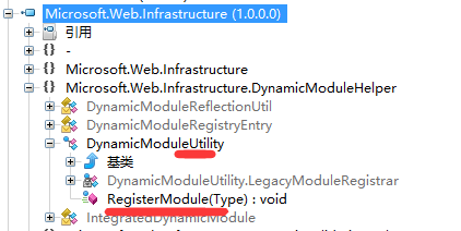 - Microsoft.Web.Infrastructure.DynamicModuleHelper 此命名空间我们可以看出他是关于动态module的helper 。