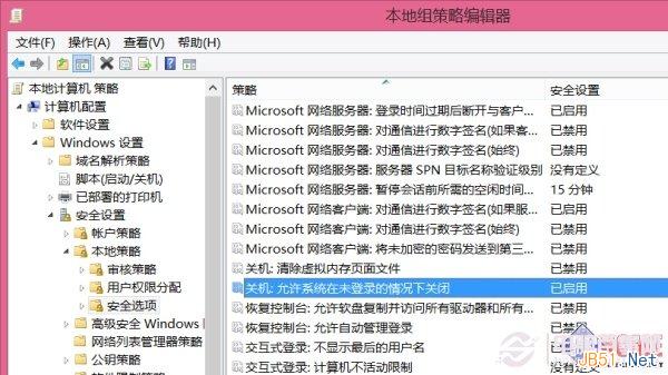 3、在安全选项的右侧列表找到“关机:允许系统在未登录的情况下关闭”;