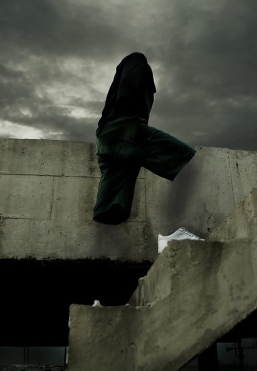 1、打开原图素材,我们首先要用仿制图章工具将腿部去掉,露出后面的墙体。