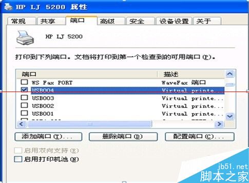 7. 点击电脑的 ” 开始 ” ---- 控制面板 ---- 打印机和传真 ---- 找到打印机的图标 , 鼠标右击属性 , 打开属性对话框 ---- 端口 将 US… 端口选上 点击应用 --- 确定 . 打印作业测试该机器处理速度恢复正常 .图7