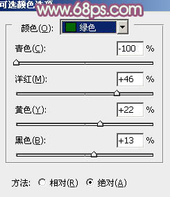 3、创建可选颜色调整图层,对红、黄、洋红、黑进行调整,参数设置如图10 - 13,效果如图14。这一步适当减少图片的红色。