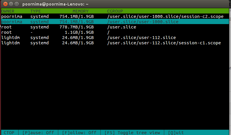 正如你在下面屏幕中所见到的那样,带有“/user.slice/user-1000.slice”路径的cgroup被高亮显示,这让用户易于跟踪,就算显示位置变了也一样。