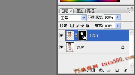 9、单击图层1中的图层蒙版,这一步非常重要,如果没有选中,后期操作会破坏原图。