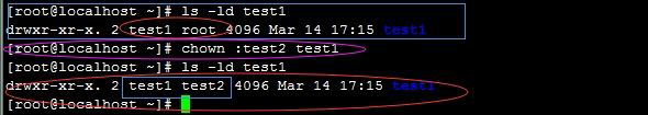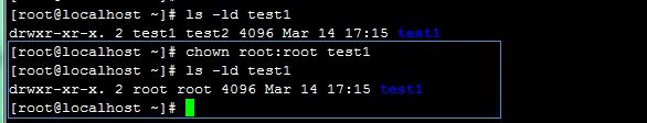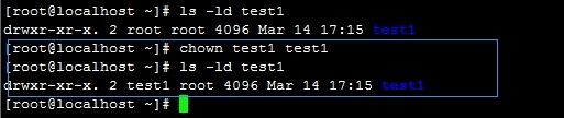 目录test1 以前的 拥有者 拥有组 都是root ,先修改了拥有者为 test1。