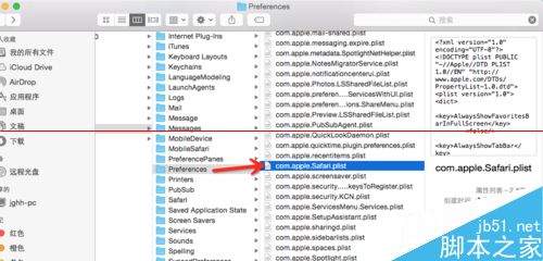 3、如果Safari浏览器特别卡,可以继续将preferences里面的com.apple.safari.plist文件删除,其他的应用软件卡同理