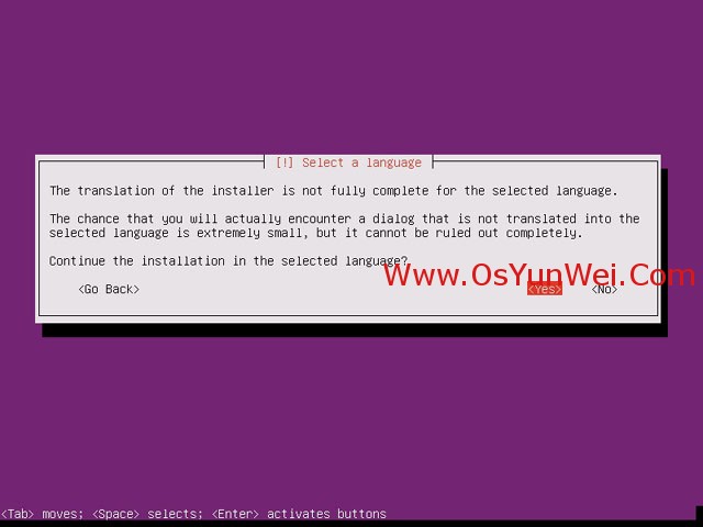 询问是否继续安装所选择的语言版本,选择“yes”