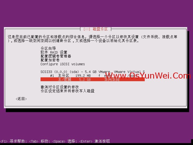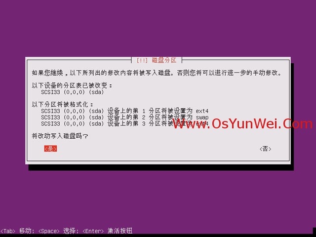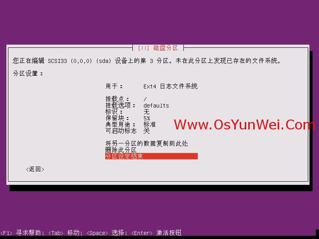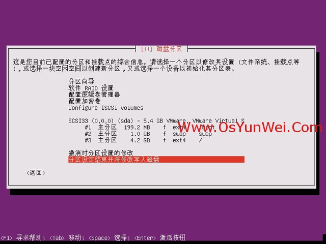 分区设定结束并将修改写入磁盘