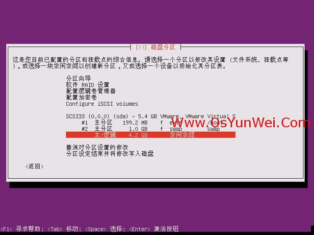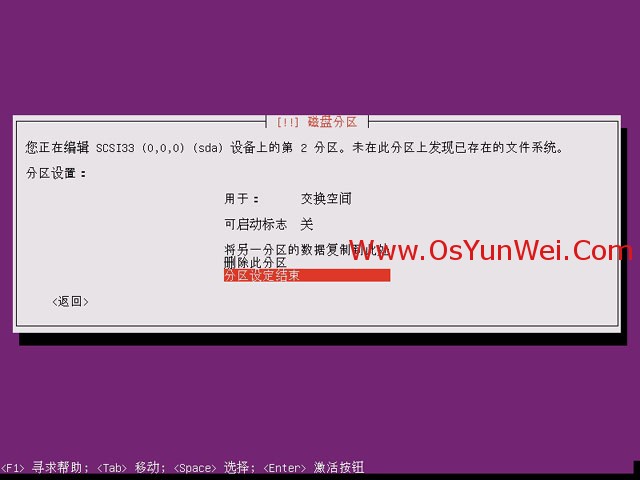 点分区设定结束,这样就设置好了swap分区(一般为内存大小的2倍),继续重复上面的步骤,在划分一个根分区
