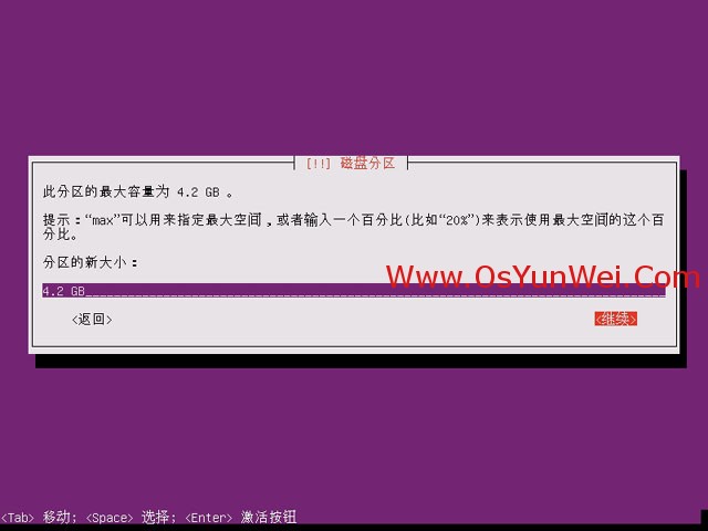 分区大小,这里默认显示剩余空间(分区之前先要规划好,我这里只分/boot,swap和跟分区"/"),