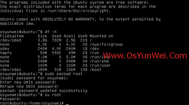 sudo passwd root #启用root账号并设置密码,根据提示输入2次密码