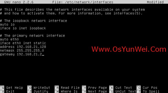 nano /etc/network/interfaces #编辑网网卡配置文件