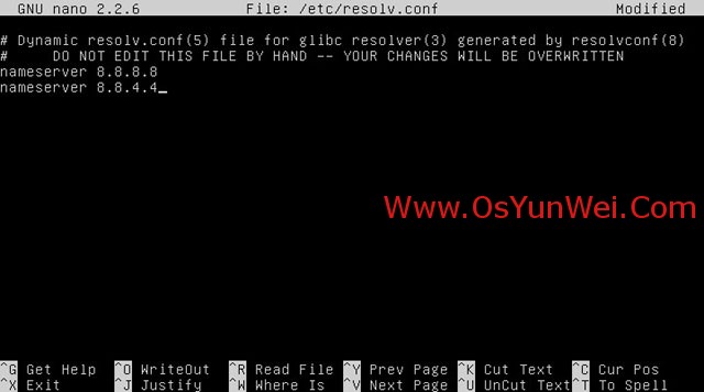 nano /etc/resolv.conf #编辑配置文件,添加以下内容