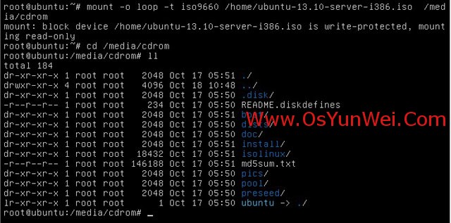 #把系统镜像文件/home/ubuntu-13.10-server-i386.iso挂载到/media/cdrom目录下
