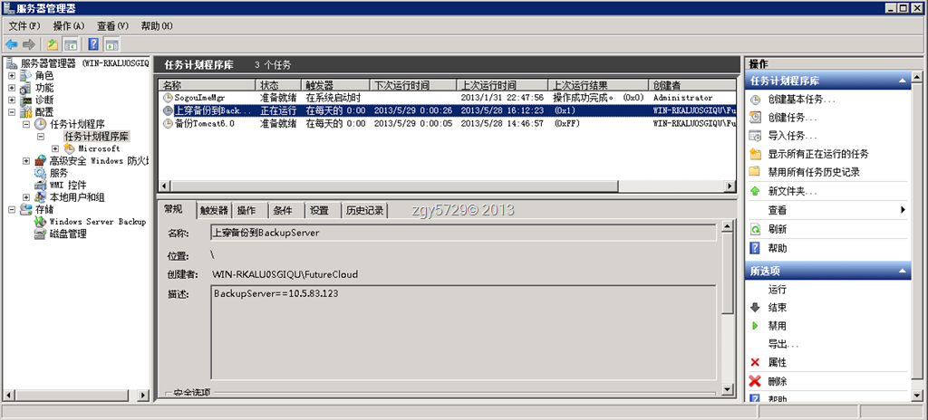 我将这个填写成了该条脚本的所在的目录,再次运行该任务计划,得到返回成功的标记,并且在服务本分服务器端受到相应的备份内容。