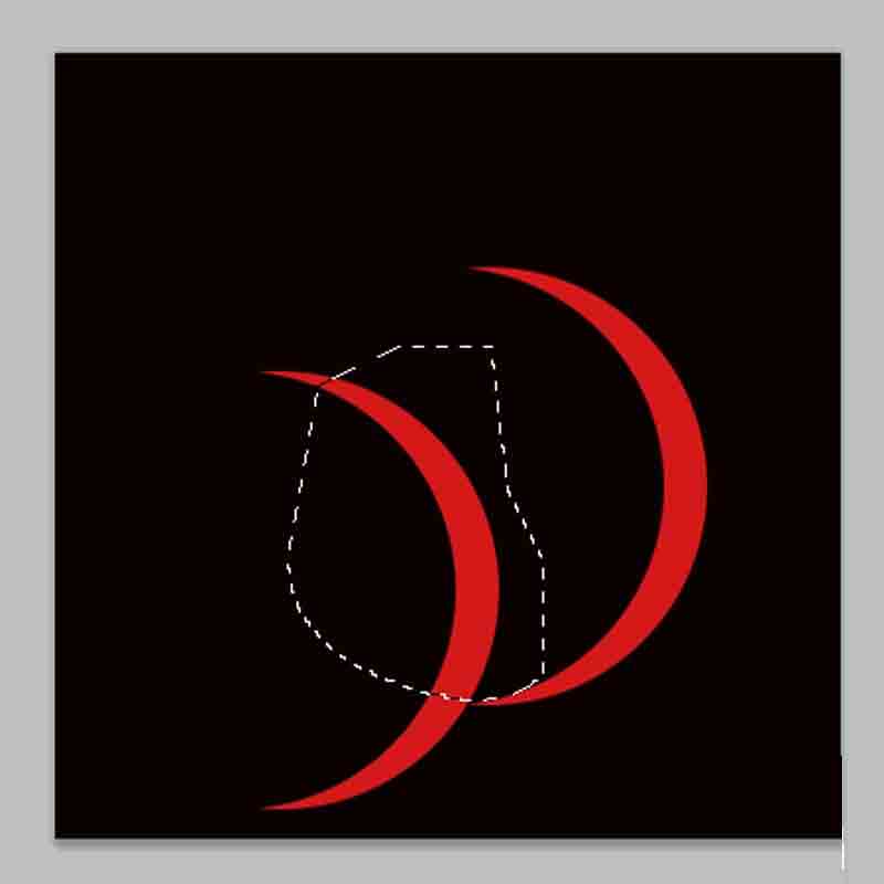 5、选择钢笔工具在第一个月牙上创建一个锚点接着选择一个闭合的路径,按ctrl+enter组合键形成一个选区。