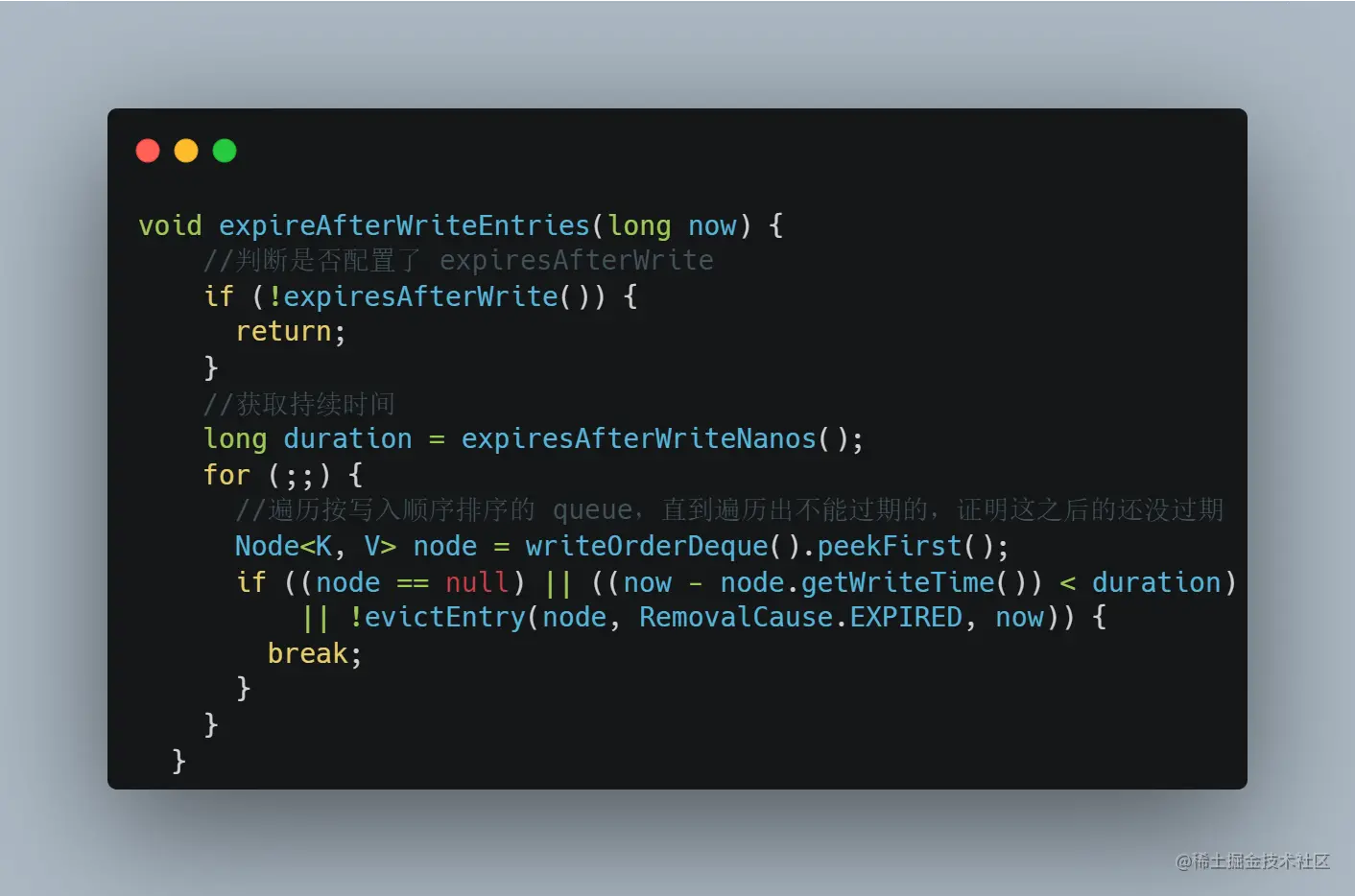 对于 maintenance 方法,由于我们配置了 expiresAfterWrite 的过期策略,所以里面会执行: