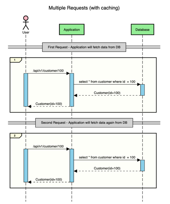 如您所见,对于每个请求,应用程序都会转到数据库获取数据。从数据库获取数据是一项成本高昂的操作,因为它涉及IO。