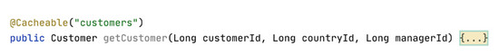 最简单的缓存键是当方法只有一个参数,并且该参数成为缓存键时。在下面的示例中, Long customerId 是缓存键