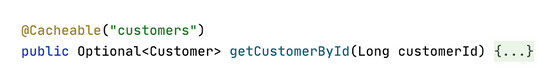 2. 向方法 Optional getCustomerById(Long customerId) 添加注释 @Cacheable