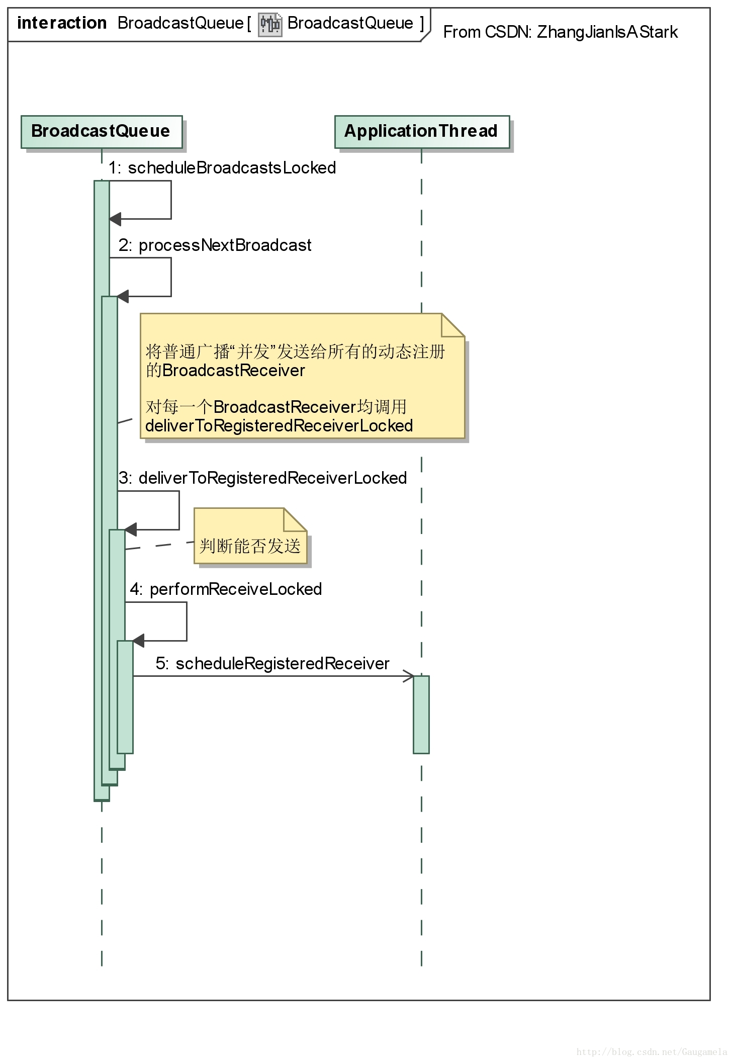 4.BroadcastReceiver对应进程的处理该消息时,将回调BroadcastReceiver中的onReceive()方法;