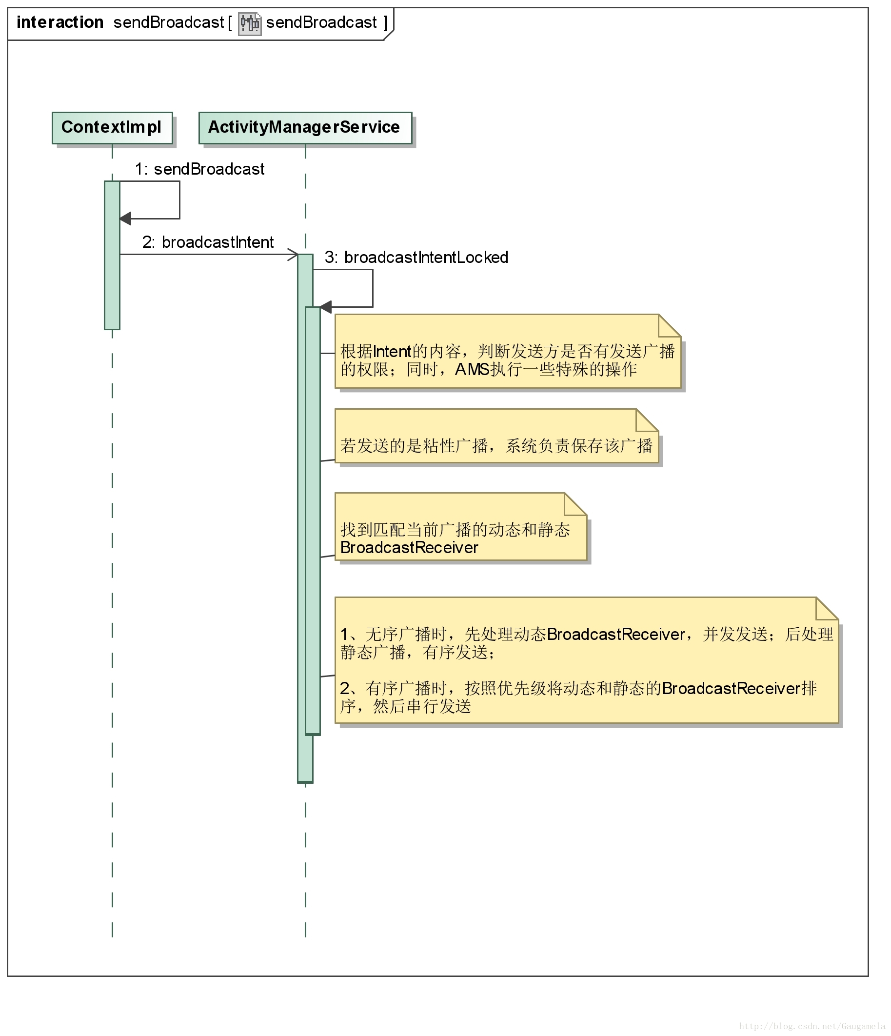 AMS收到上一个BroadcastReceiver处理完毕的消息后,才会将广播发送给下一个BroadcastReceiver。