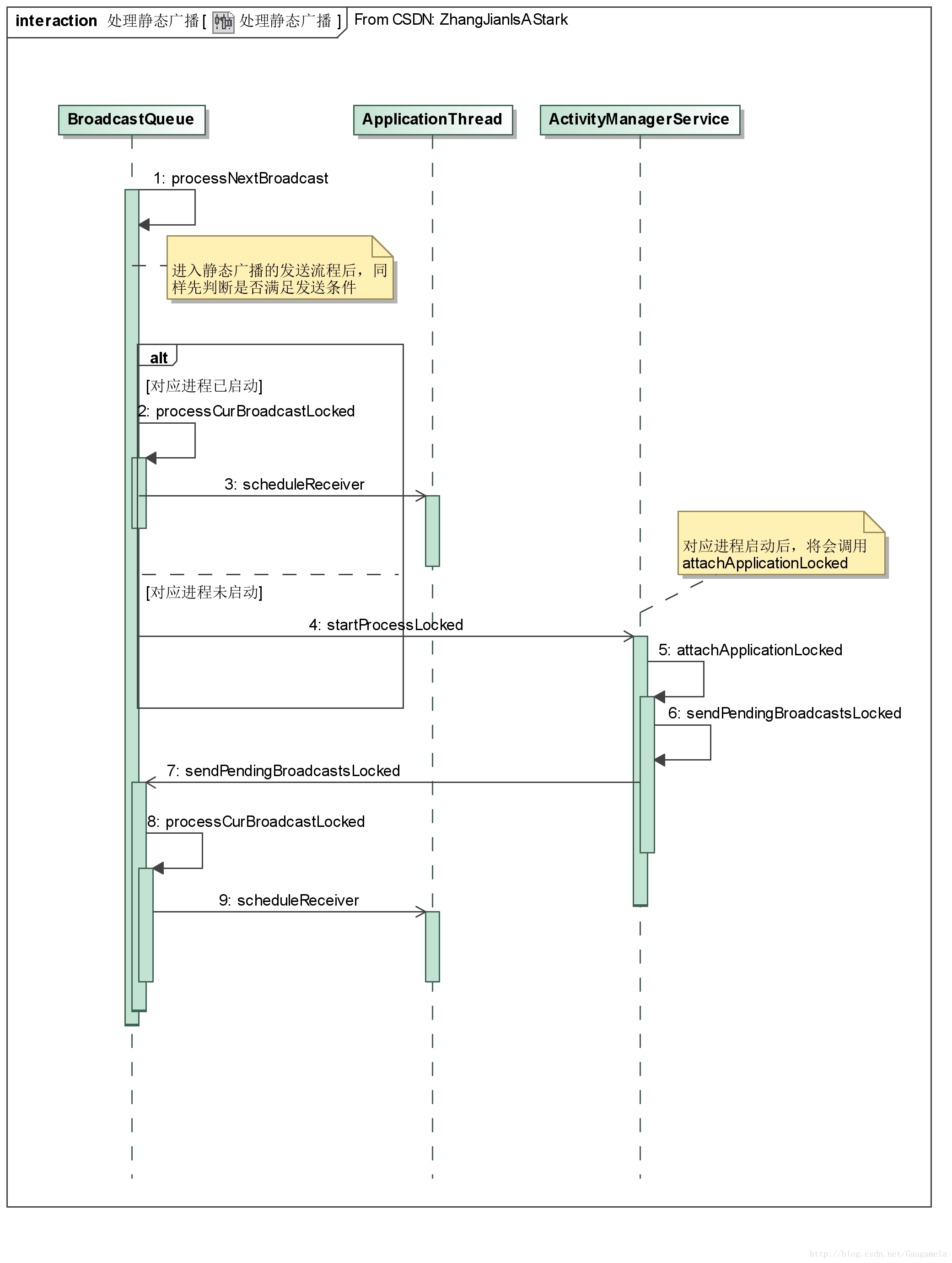 AMS需要先启动对应的进程,然后利用Java反射机制构造出BroadcastReceiver,然后才能开始后续的处理。