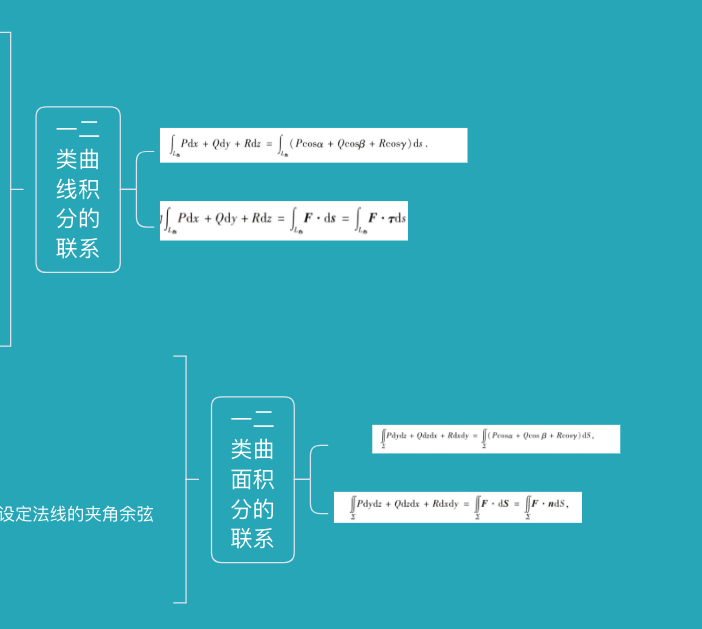 整体内容相当于将一元积分进行了维度的推广——从二维空间推广到更高维度。多元积分成功地将一元函数的一重积分推广到二重三重,此外还添加了曲线曲面积分。曲线曲面积分又可以分别分为第一类和第二类。