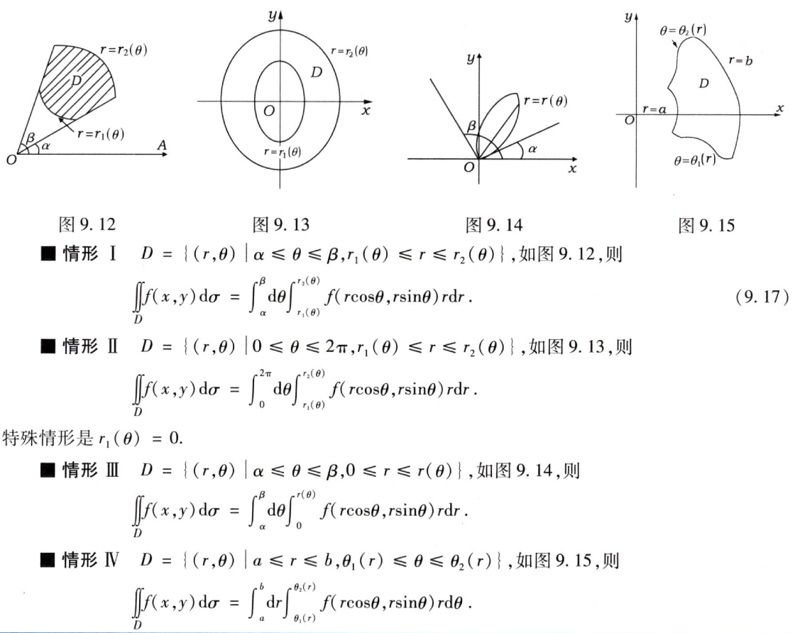 变换的过程的难点不在于将xy换成θ的形式,而在于确定二重积分各自的上下限。正元将上下限的确定分成了四种情形,大致如下: