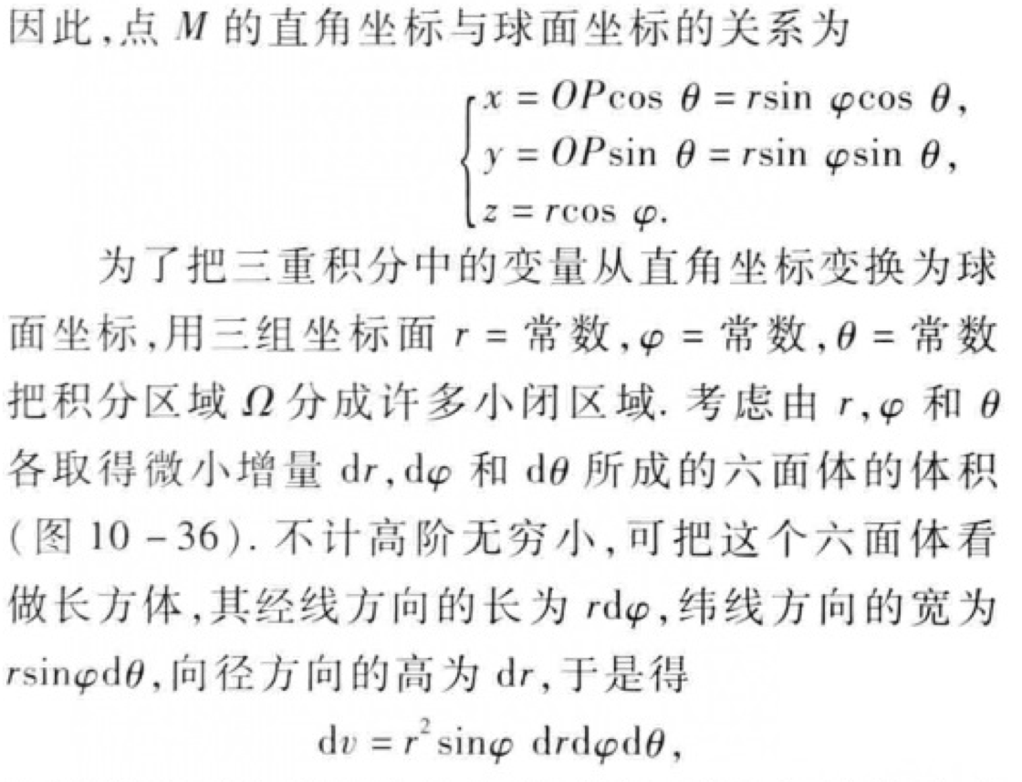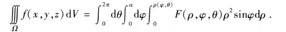 圆锥形状的区域则是球坐标情形下的一个特例,将φ的上限改为一个小于180度的角度值,则可以计算圆锥区域的三重积分,具体公式如下: