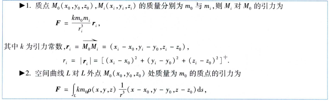 从定义上来讲,一元积分和多元积分没有什么区别,都是和式的极限。从计算上来看,除了将多元积分转换成重积分之外,更重要的思想是进行各种变换——极坐标、参数方程、柱坐标、球坐标等。这样的转换有着显著的特征,可以在看到题目时根据题目特征进行合适的转换。此外,在进行曲线曲面积分时,格林公式、高斯公式和斯托克斯公式这三大公式可以带来简便。基于多元函数的定义,可以利用此函数对一些几何量(平面的面积、曲面的面积、空间几何体的体积、曲线的弧长)和物理量(质量、质心、形心、功、转动惯量、引力、流量)进行建模计算。