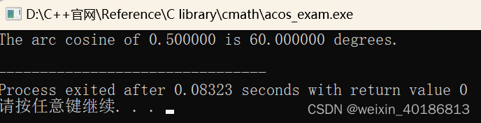 C++官网参考链接:https://cplusplus.com/reference/cmath/acos/
