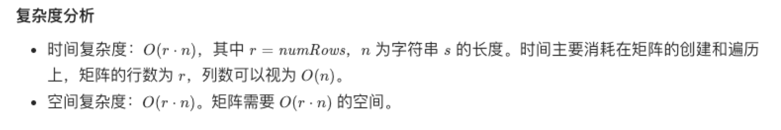 * 考虑创建一个二维矩阵,然后在矩阵上按 Z 字形填写字符串 s,最后逐行扫描矩阵中的非空字符,