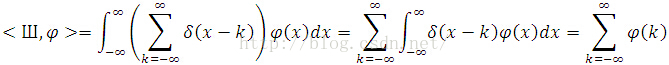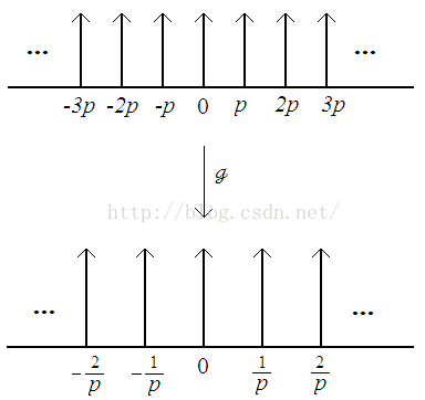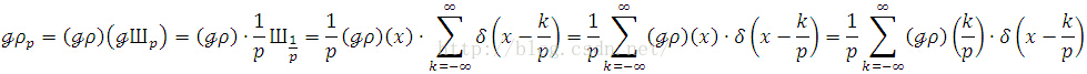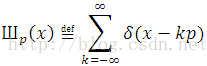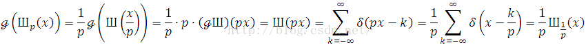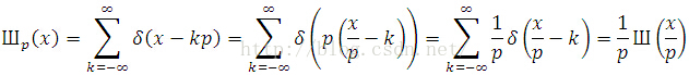 Therefore, by using the stretching property of Delta function, we represent Shahp(x) in terms of Shah(x/p) with a coefficient of (1/p).
