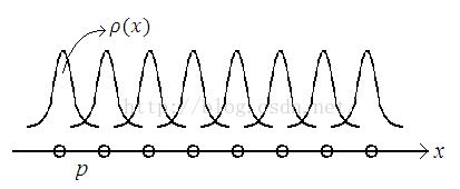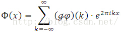 The function ro(x) denotes an electron density for a single atom. Then, the entire electron density distribution rop(x) for crystal is given by the periodized version of ro(x),