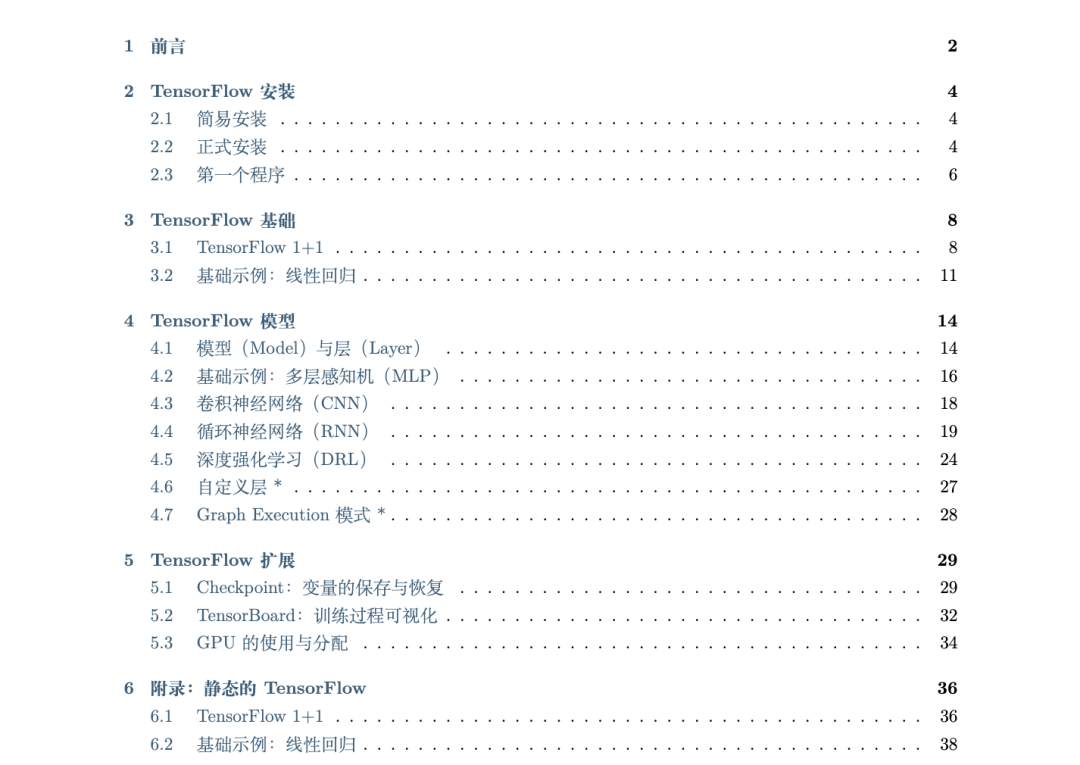 《简单粗暴 TensorFlow》一书,是基于Eager Execution(动态图)模式的,精简的TensorFlow入门指导,力图让具备一定机器学习及Python基础的开发者们快速上手TensorFlow。它的目录如下: